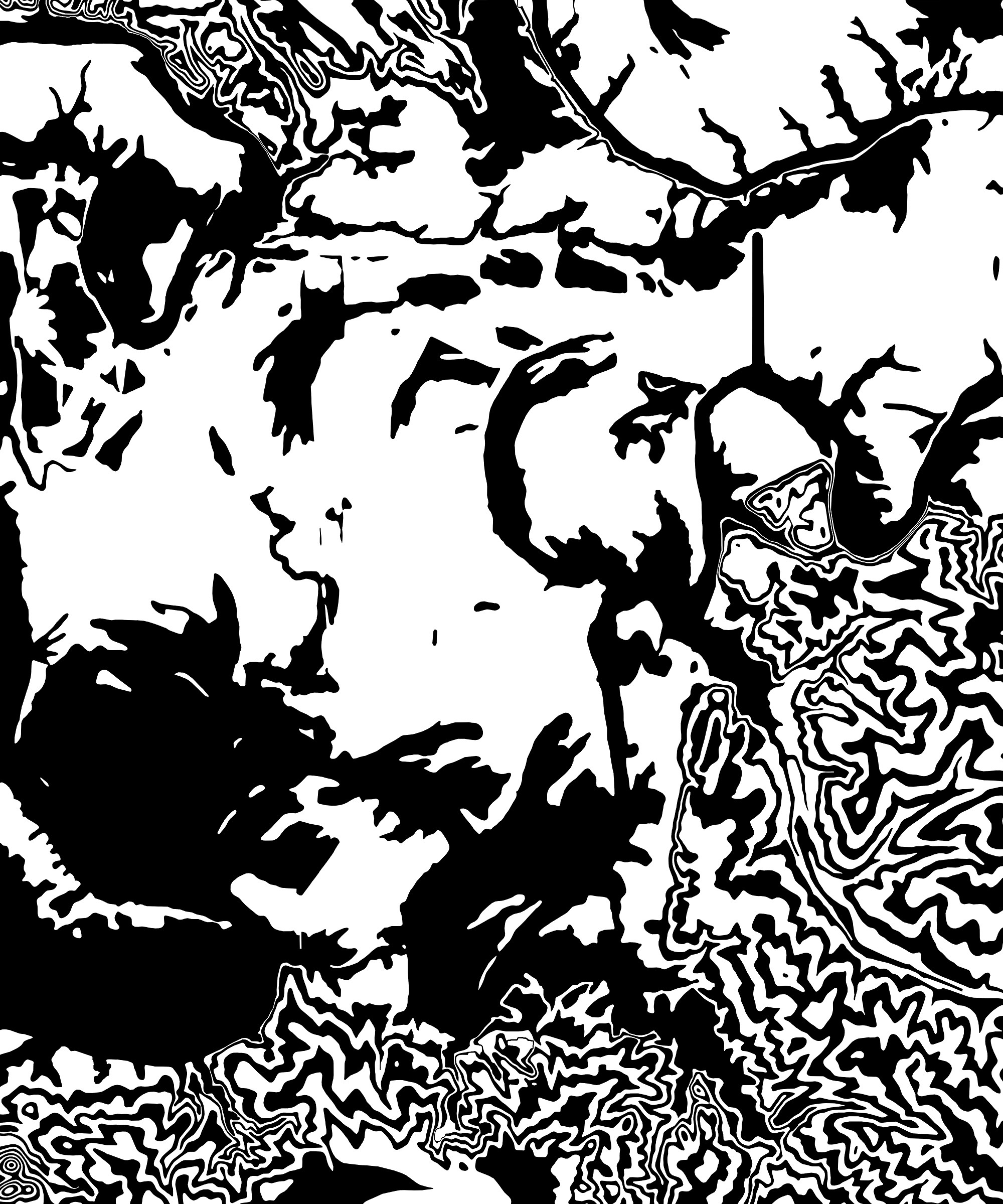 Contour lines on a topographic map are imaginary lines connecting points on the map that have the same elevation on the surface of the land above or below mean sea level. These found abstractions taken from the US Geological Survey's 7½ Minute Series reveal natural and man-made shapes and patterns of each landscape at the time each map was drawn. I begin in the top left corner with black and alternate black and white, filling in the space between the contour lines, until I reach the lower right corner. The titles are taken directly from the maps themselves.