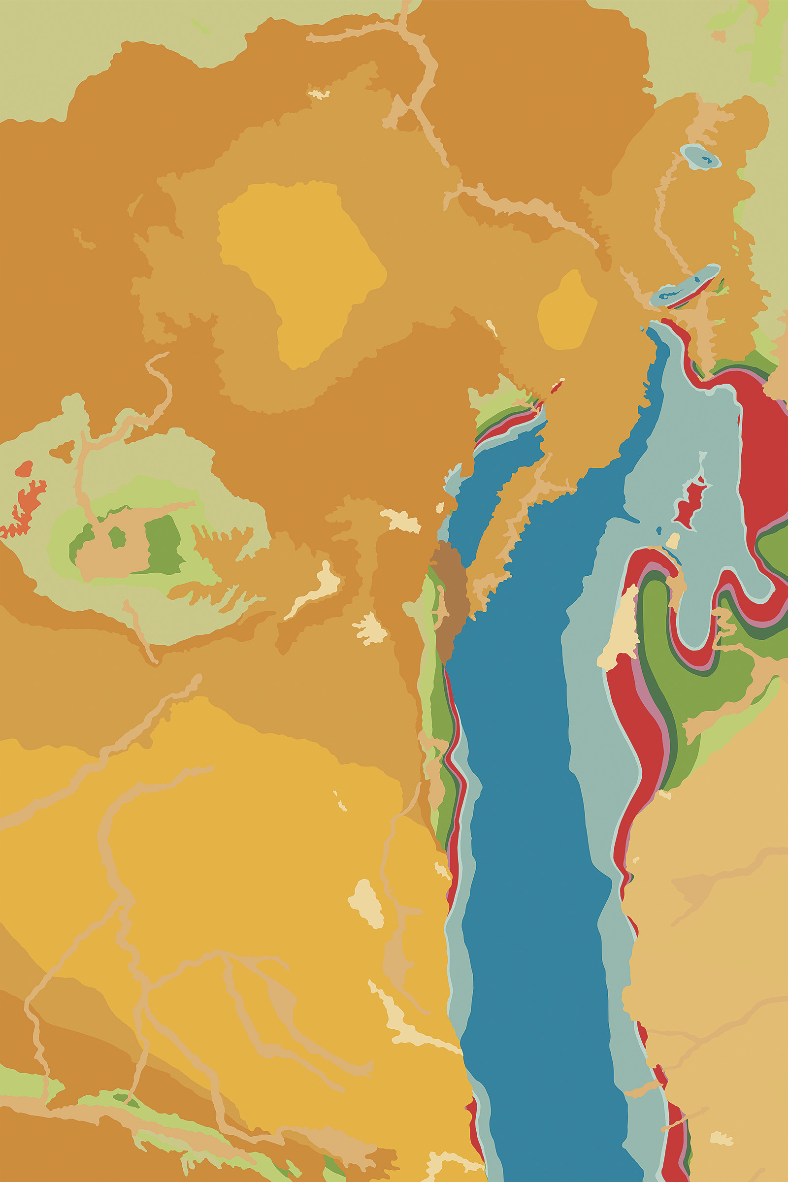In the Geologic Abstractions series I downloaded images from the Internet of vintage hand-watercolored geologic maps from the 19th and early 20th centuries. Using the colors from the maps themselves and deleting all other information in the maps these painting-like abstractions were revealed. The titles are taken directly from the maps and offer the only hint at the actual location in the maps. These found two-dimensional representations of three-dimensional space are rectified readymades and are snapshots of geologic time.