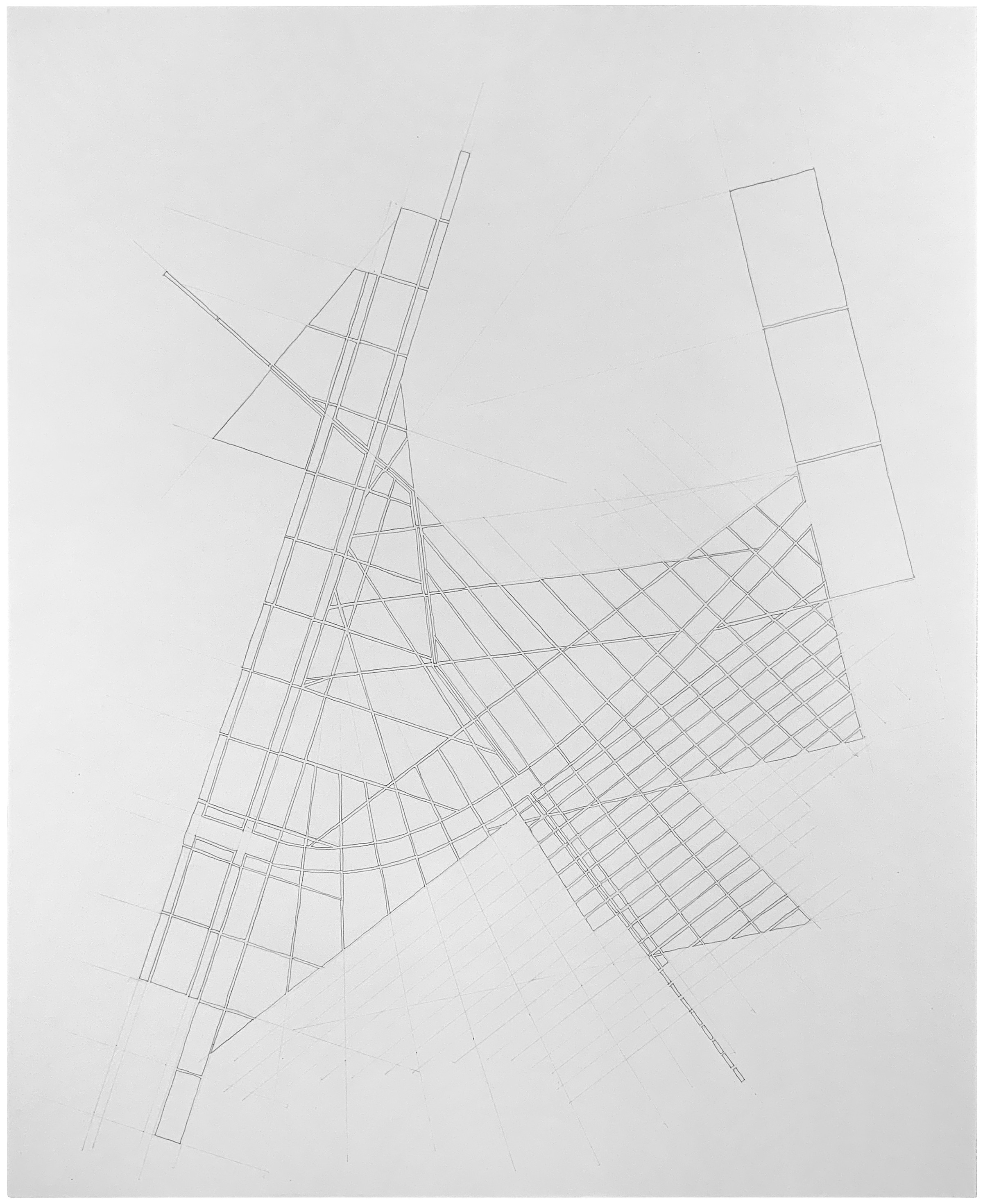 Influenced by maps from art history books of ancient settlements and the drawings and observations in Edmund N. Bacon’s Design of Cities the Plans series of fictional neighborhoods developed from a sketchbook made during a period where my time working in the studio was limited. The drawings necessarily needed to be faster and less obsessively detailed than the other drawing series I have been engage in making for the last 18 years. Simply put, the Plans series uses a cartographic-like vernacular as a compositional language. There are only a couple of rules that I generally follow but other than those each drawing is an organic process of action and reaction that begins at a random point on the paper.