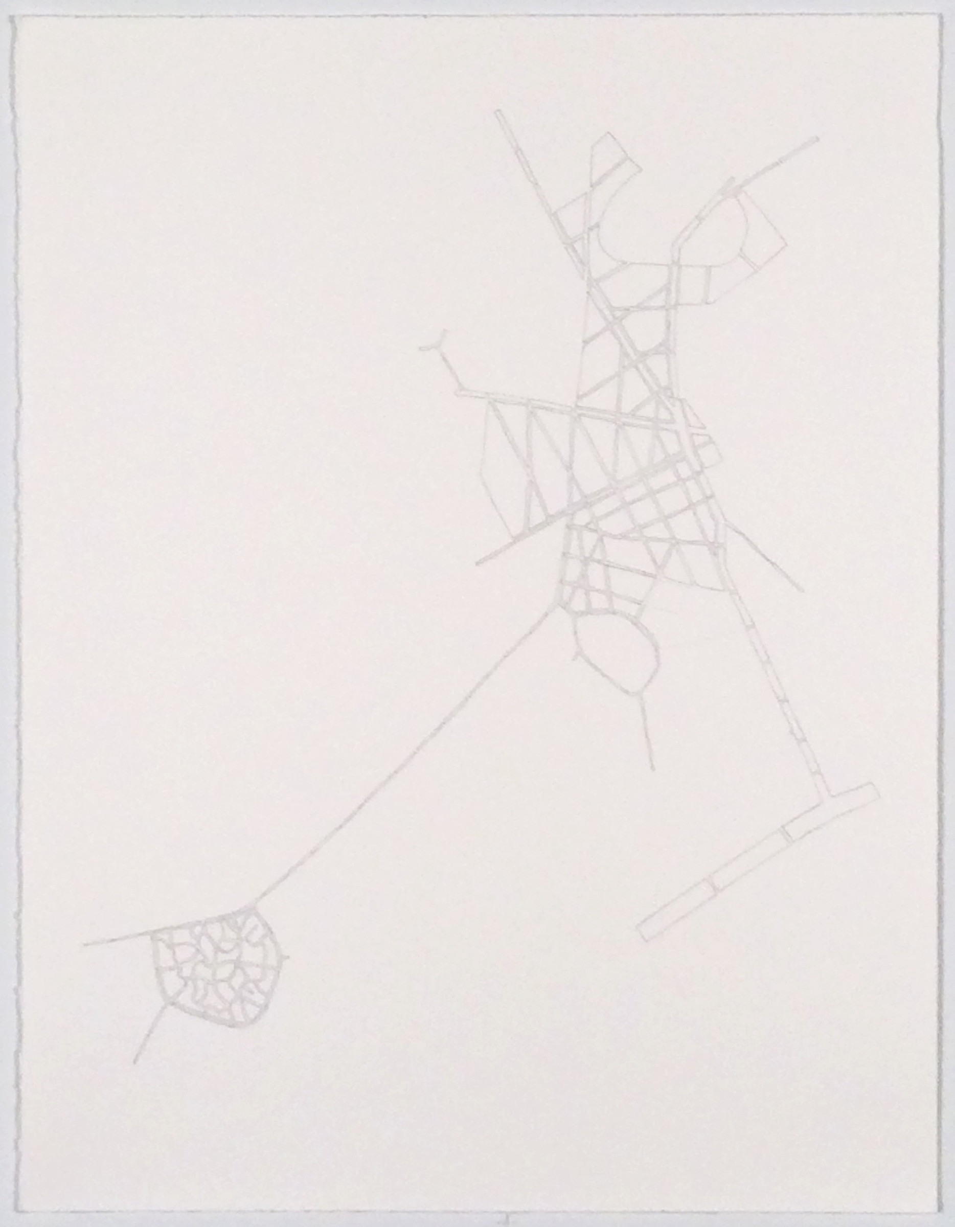 Influenced by maps from art history books of ancient settlements and the drawings and observations in Edmund N. Bacon’s Design of Cities the Plans series of fictional neighborhoods developed from a sketchbook made during a period where my time working in the studio was limited. The drawings necessarily needed to be faster and less obsessively detailed than the other drawing series I have been engage in making for the last 18 years. Simply put, the Plans series uses a cartographic-like vernacular as a compositional language. There are only a couple of rules that I generally follow but other than those each drawing is an organic process of action and reaction that begins at a random point on the paper.