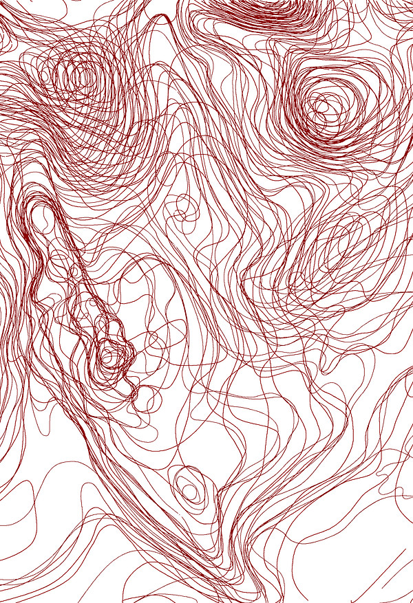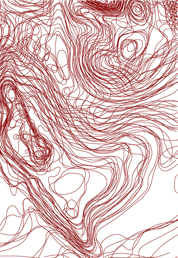 Surface Analysis maps are made by the National Oceanic and Atmospheric Administration (NOAA) which detail surface conditions of North America. These maps are published every three hours of every day. I downloaded high resolution maps from the NOAA website and reduced the images to just the isobar lines and then layered the eight maps published each day. The titles and color of the lines are taken from each map.